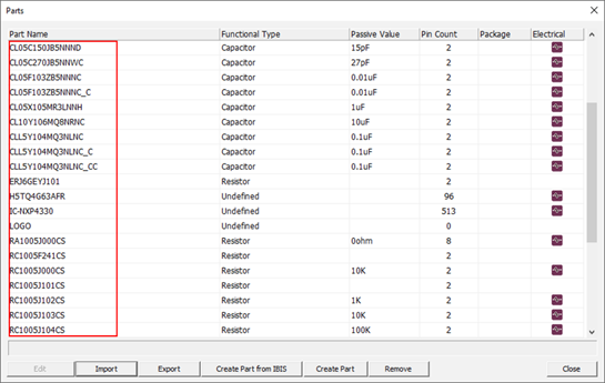 The unified parts created by PollEx Unified Part Library (UPE) contain information such as electrical buffer model, package thermal parameters, and 3D package geometry, which is needed for electrical, thermal, and 2D/3D assembly analysis.