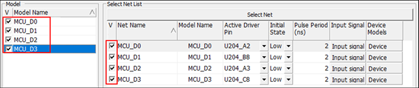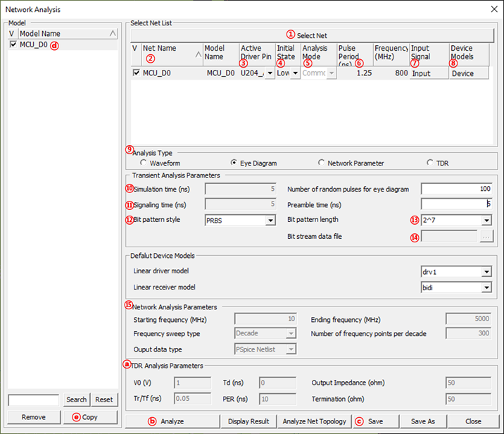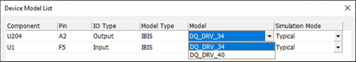 8. Device Models: for the selected active driver, actual driver model can be selectable among many different models in IBIS or Linear device model types. You can use one of available models considering the output impedance, driving capability measured by output current level and operating frequencies. These driver’s characteristics lead huge impact on the simulated waveforms.