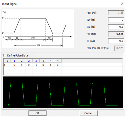 7. Input Signal: you can change the detailed parameters which can specify the actual shape of the input signal, for example: TD (Time Delay), TR (Rise Time), TR (Fall Time) and PW (Pulse Width).