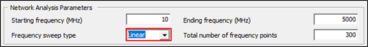• Linear: Network parameter will be solved for 300 frequency points between 10 MHz ~ 5000 MHz.