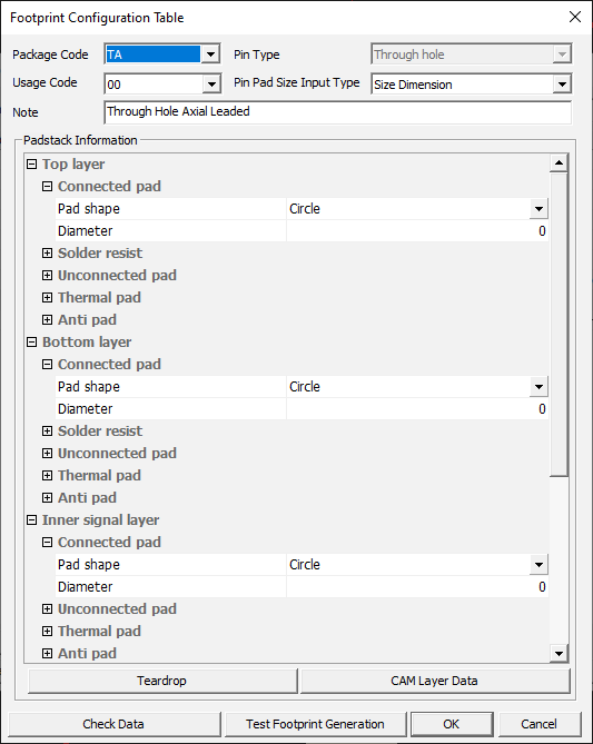 5. Pin Pad Size Input Type: Select the method for defining pad size among Size Dimension and margin from Drill Hole.