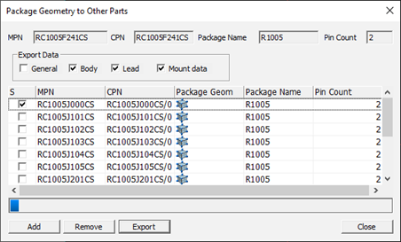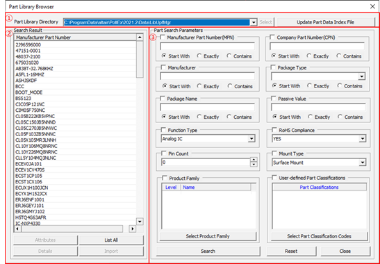 9. Search Result: Display part search result and select part which will receive the exported information.