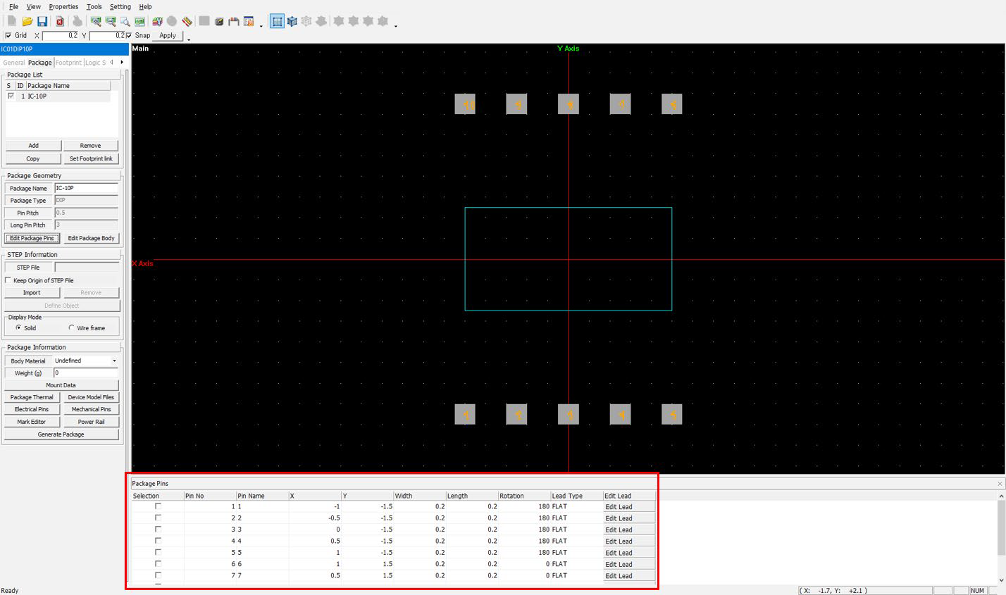 4. Click Edit Package Pins to edit the shape of the package pins.