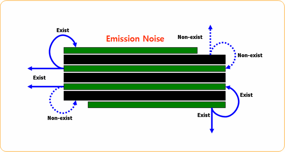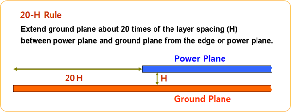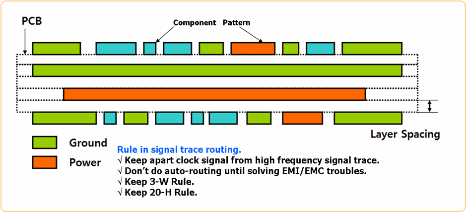 In order to be protected from RF or EMI (Electromagnetic Interference), ESD (Electrostatic Discharge) or EOS (Electrostatic Overstress) from inner layer or outside of PCB, routing pattern should have enough distance from board edges.