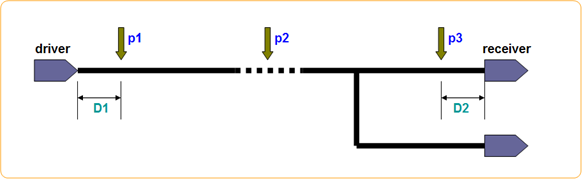Locations of p1, p2 and p3 are decided depending on the circuit characteristics and environment. Between p1 and p3, it is necessary to define maximum distance.
