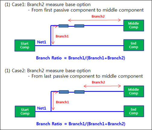 • Branch2 measure base: If passive components exist in net, you can assign branch2 measure reference.
