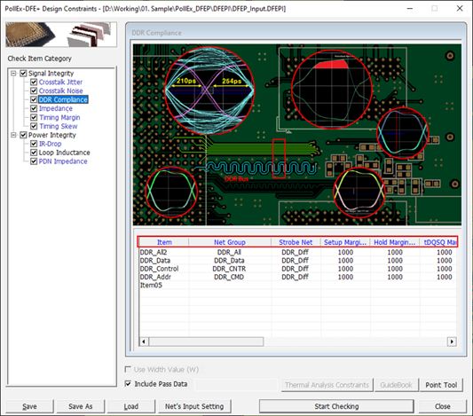 - DDR Spec: The setup time of input signal is automatically filled if user use Import DDR Spec. You can modify each parameter.