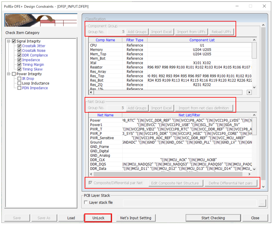- Use Comp/Net Group Excel: Select the path of Excel file to be imported in Component, Net Group.
