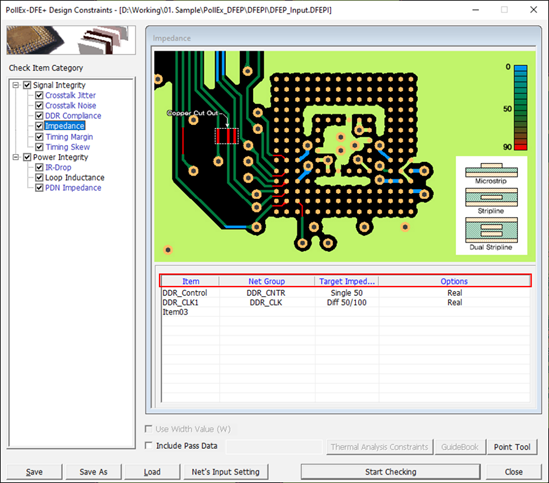 This item analyzes and checks single-ended and differential impedance of target nets.