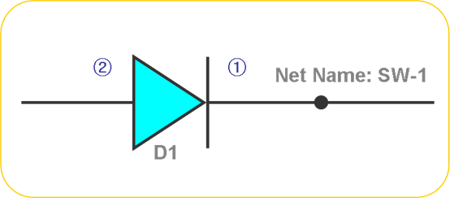 Signal pattern SW-1 has a connection to the pin 1 of component D1.