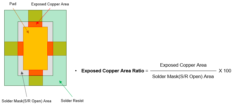 - Exposed Copper area ratio: Checking the ratio of exposed copper in the area between the pad and the solder mask.