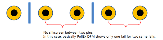 Check the existence of silkscreen between two pins of DIP type components.