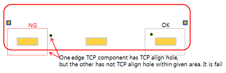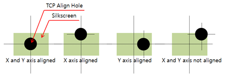 - Y: Check if the TCP align hole is aligned with silkscreen along the Y-axis. If they are not aligned along the Y-axis, it is a fail.