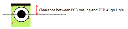 - Clearance between PCB Outline to TCP Align Hole Center: Set the