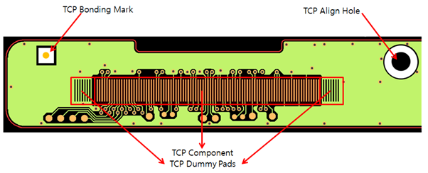 TCP component is a tape carrier package. TCP align hole is used to fix the TCP components.