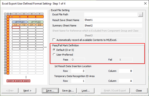 • Added a Pass/Fail Mark Definition option in the User Defined Excel Format Setting dialog to use User-Preferred string.