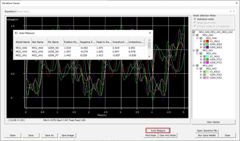 • Added a function to automatically measure basic timing such as Positive/Negative peak, Peak to Peak, overshoot/undershoot, and so on in SI's Waveform Viewer.