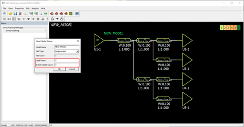 • Added a feature to multi-load when creating Net Topology in SI and SI Explorer. You can create the desired multi-load net topology by adjusting the Load Count and Branch Depth Count parameters.
