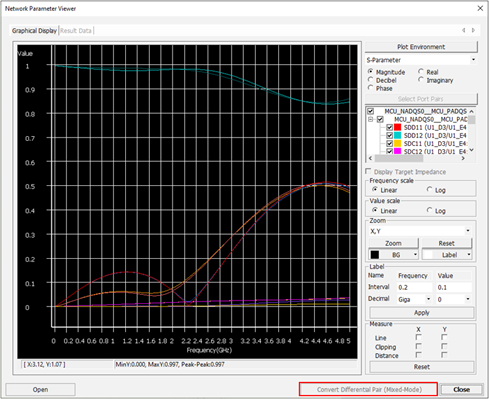 • In the case of 4-port S-parameter in the Network Parameter Viewer dialog, the mode conversion function is added.