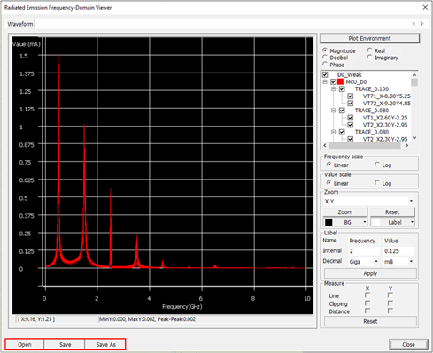 • Added a function to save and load waveform data in each window of Time-Domain and Frequency-Domain when performing Radiated Emission, and compare various case analysis results through a what-if simulation.