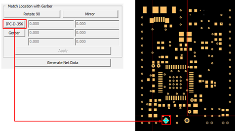 The data will be matched by moving the IPC data to the Gerber data based on the selected component on each design.