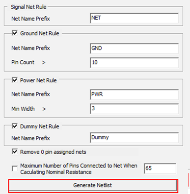 - Disable the Maximum Number of Pins Connected to Net When Calculating Nominal Resistance checkbox.