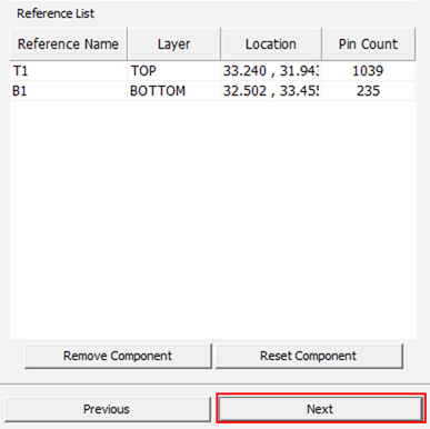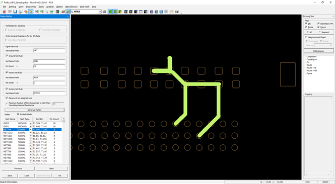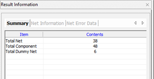 Once the PCB design generation is completed, you can review the results of the Summary, Net Information, and Net Error Data. In each tab, a selected net from the lists will be focused and highlighted on the right-side of window for your review.