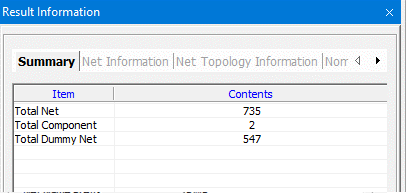 The result is displayed in each category such as: Summary, Net Information, Net Topology Information, and Nominal Resistance.