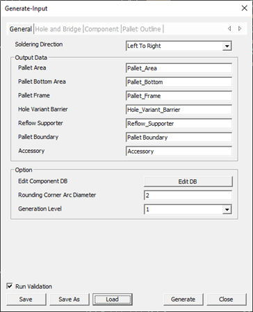 From the menu bar, click Soldering Pallet > Generator > Setting Generation.