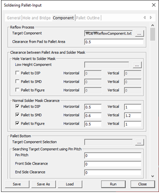 In the Component tab of the Soldering Pallet-Input