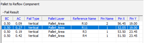 The generated Soldering Pallet area is verified automatically, and results are listed as shown below. The two types of results are pass and failed.