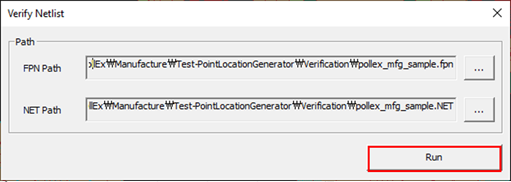 - From the menu bar, click Manufacture > Test-Point Location Generator > Verify Netlist.