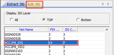 The selected net is displayed in the window.Note:must be activated to add the JIG data.