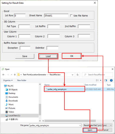 - Click Load and select the pollex_mfg_sample.jrrs file from the following directory: C:\Temp\Altair-PollEx\Manufacture\Test-PointLocationGenerator\ResultReview.