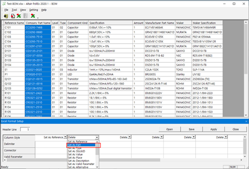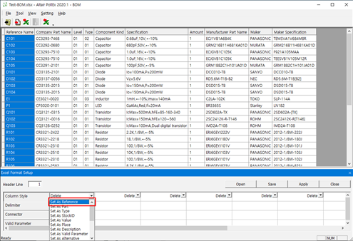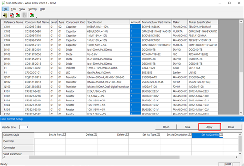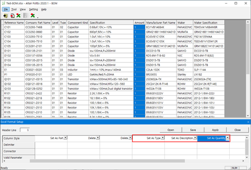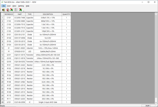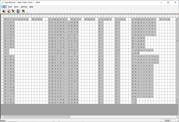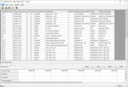 - Select the Test-BOM.txt file from C:\Temp\Altair-PollEx\PollExBOM.