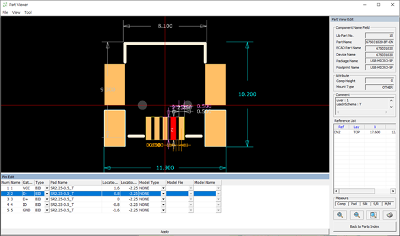 - Check the dimension information using the Comp, Pad, Silk, S/R, M/M buttons.