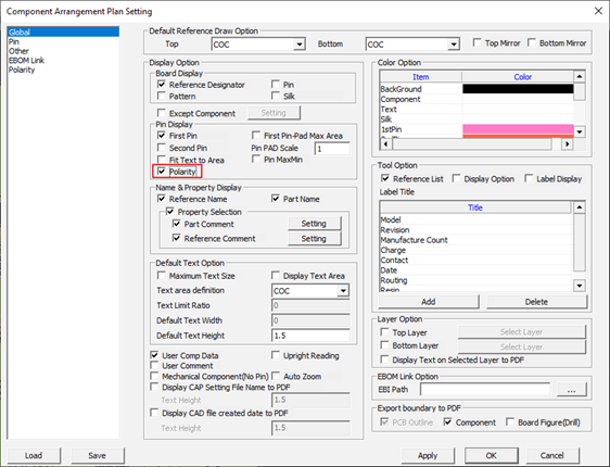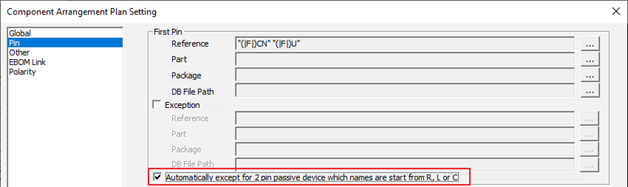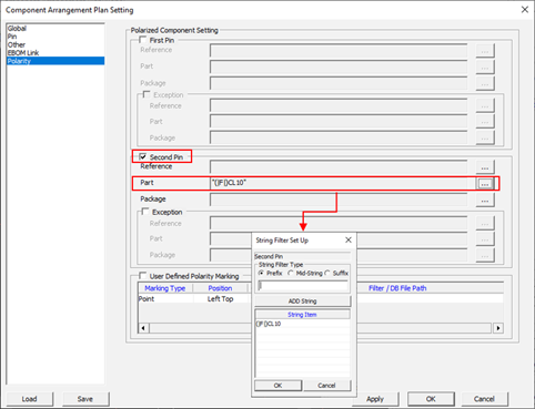 - In the Component Arrangement Plan Setting dialog, select Polarity.
