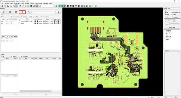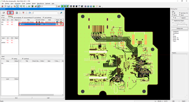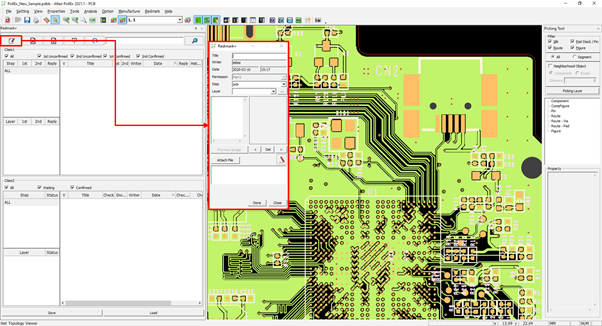 by directly displaying on the layer or point that needs to be revised or reviewed in the PCB