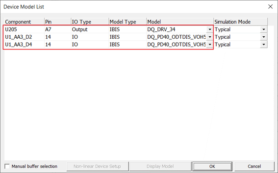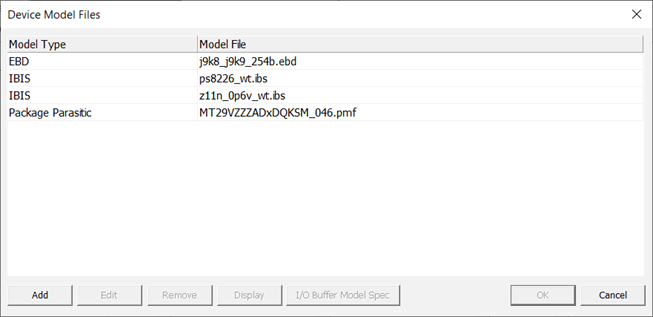 Figure 5.The Device Model Files dialog displays. The EBD, IBIS, and Package Parasitic are displayed.