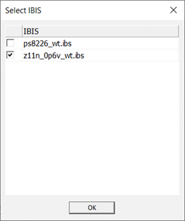 Select the IBIS file (z11n_0p6v_wt.ibs) as a memory IBIS