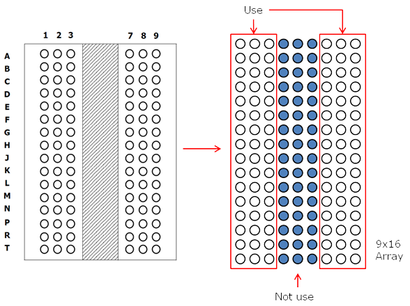 Twenty-four pins will be placed to each side. One to 24 at left side, 25 to 48 at bottom side, 49 to 72 at right side and 73 to 96 at top side.