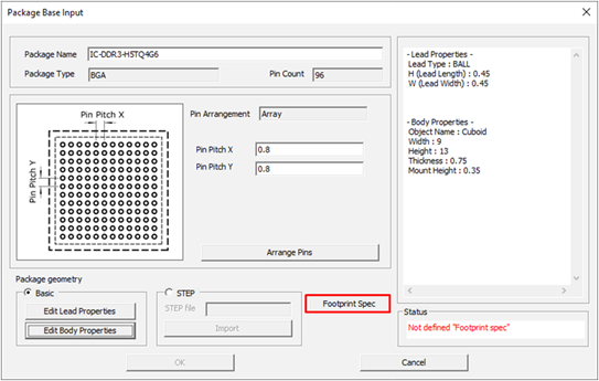 Click Footprint Spec to define the footprint