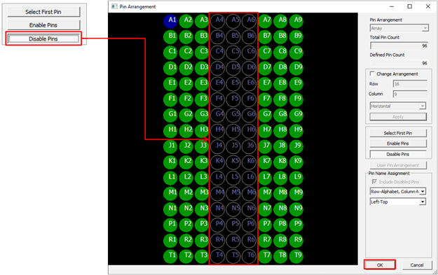 Figure 14. - Click Disable Pins and select the pins that are not used.