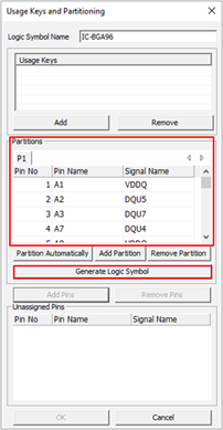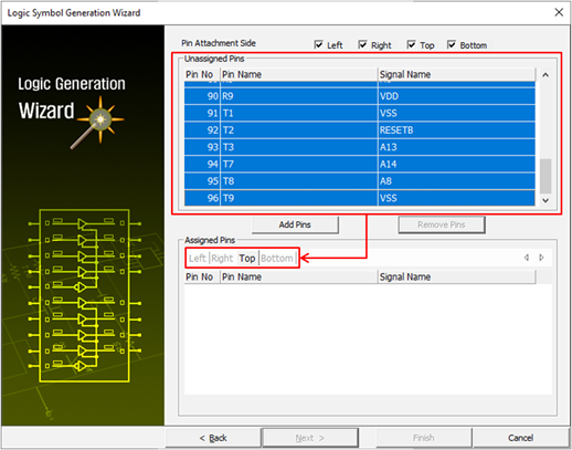 - Enter a name for logic symbol, select all pins in the unassigned pins area, and click Add Pins.
