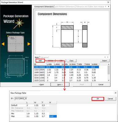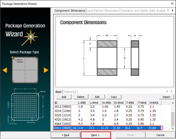 - Set Package Type to Chip Capacitor.