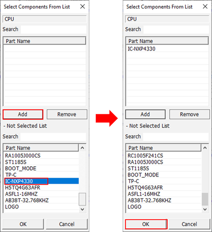 Figure 7. - Select the first component and click OK to close the Select Component Manager dialog.