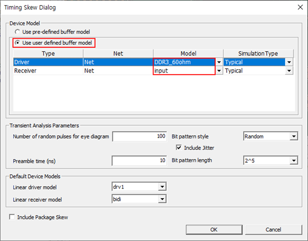 If you check the Use pre-defined buffer model, default Driver and Receiver models from UPE will be used.