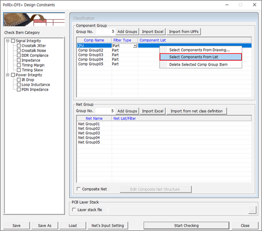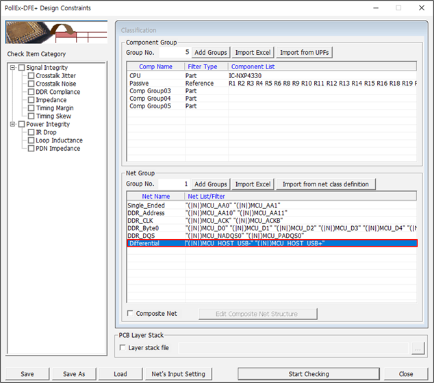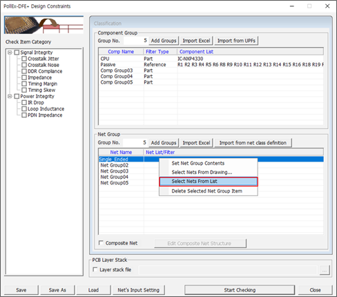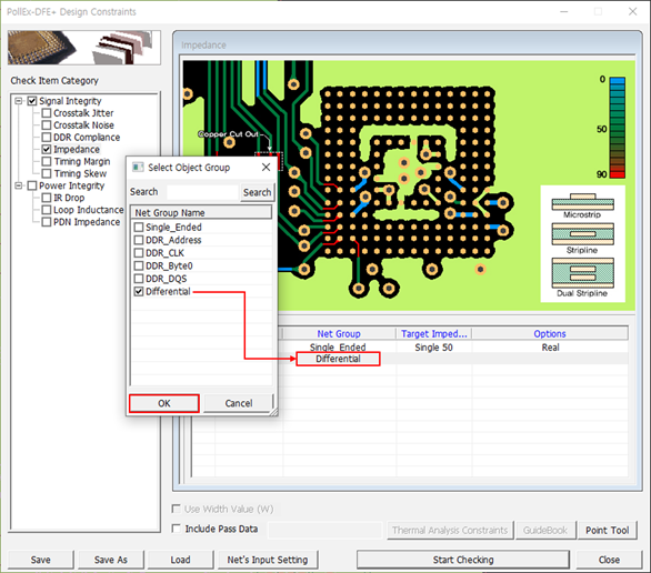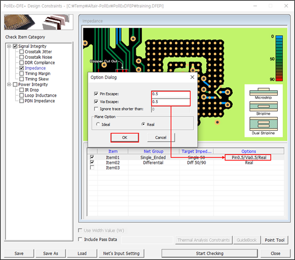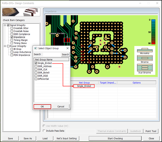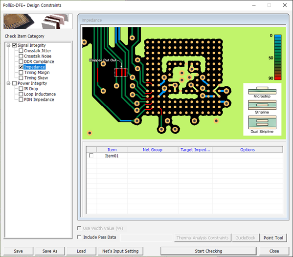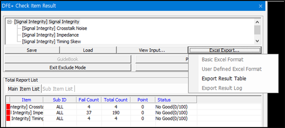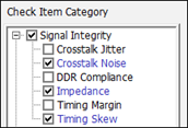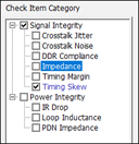 - Disable the Impedance and Timing Skew checkboxes in the Check Item Category section.