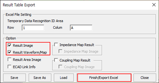 Figure 54.The Result Table Export dialog opens. - Enable the Result Image checkbox.