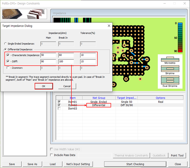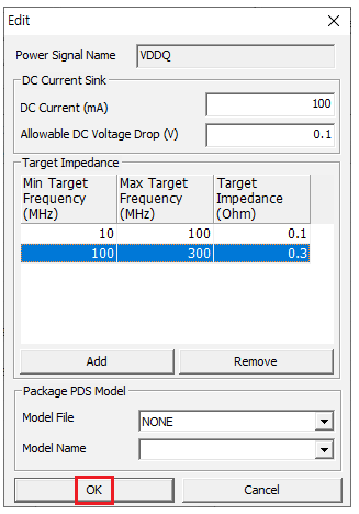 Click Add to setup Target Impedance.